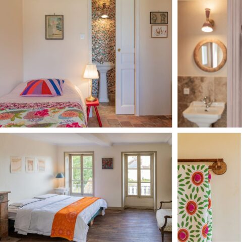 Le Grippault heeft acht met zorg ingerichte gastenkamers, elk met een eigen badkamer. Je kunt een kamer alleen boeken, of delen met een andere deelnemer.